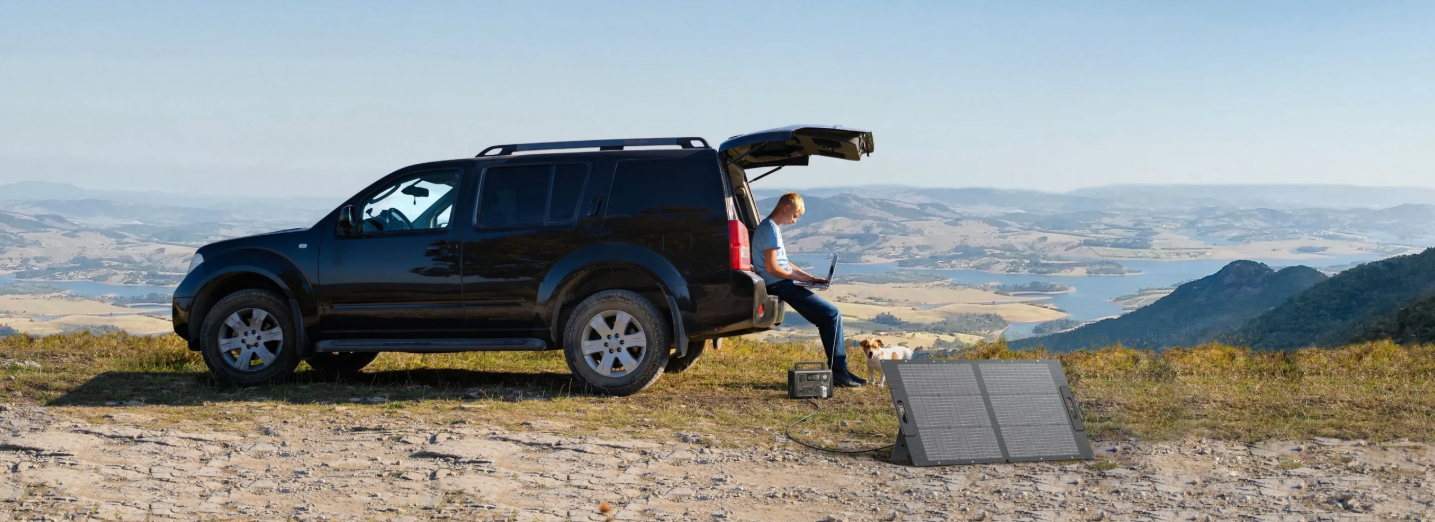 Išskleiskite PV100D, užfiksuokite atramas, sureguliuokite kampą, kad maksimaliai padidintumėte saulės spindulių kiekį, ir jau galite naudoti saulės energiją savo generatoriams.